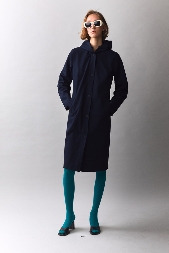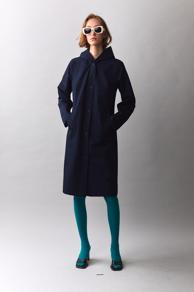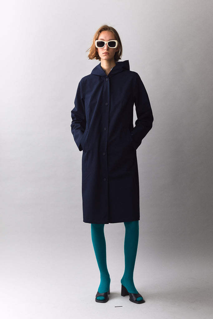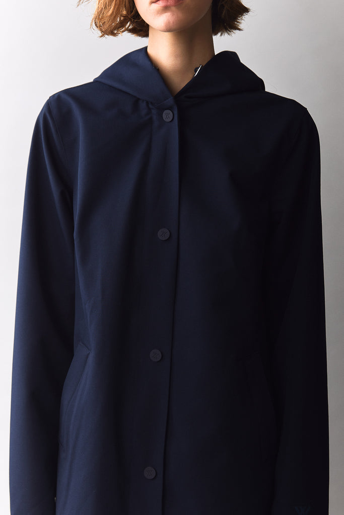 A lightweight stylish parka crafted from a canvas-like shell. The fabric has the look of a nicely woven cotton canvas. The Long Tube is our signature ladies coat. Lined with a soft viscose fabric. On top the double DWR to ensure trickeling down the water.