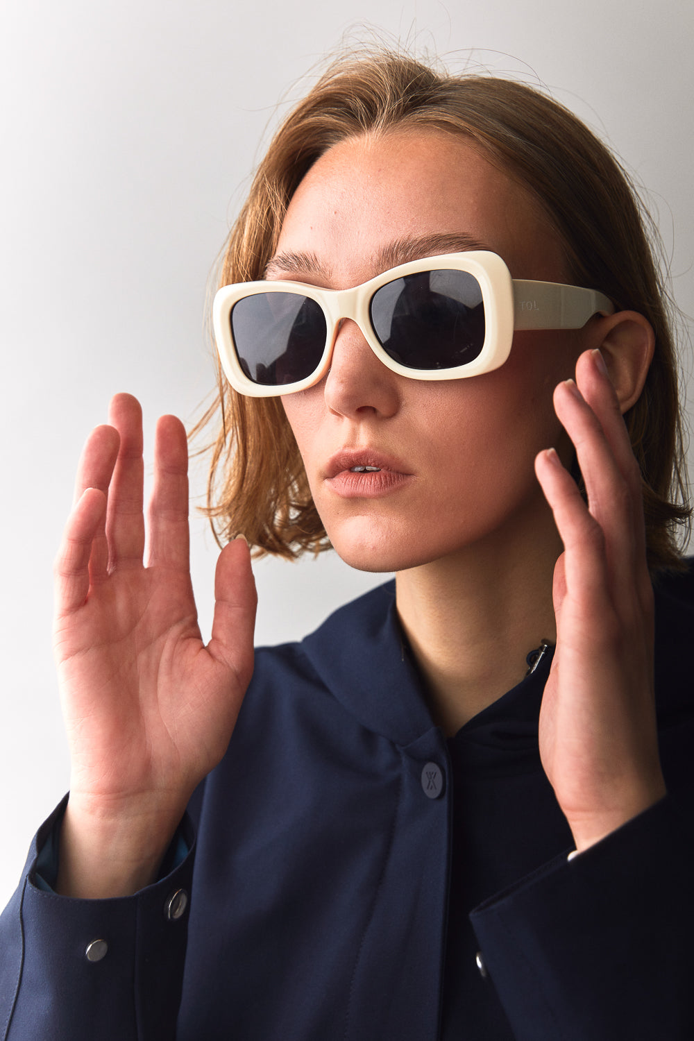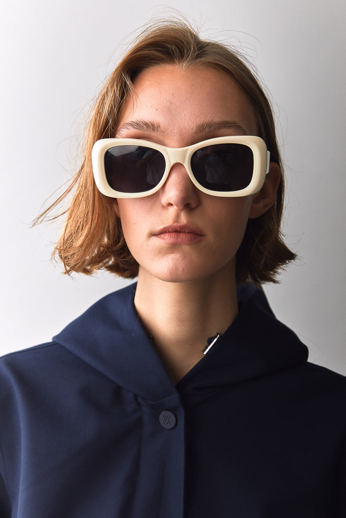The NOT SO LONG TUBE SS23 in Navy. The model is wearing size Small.