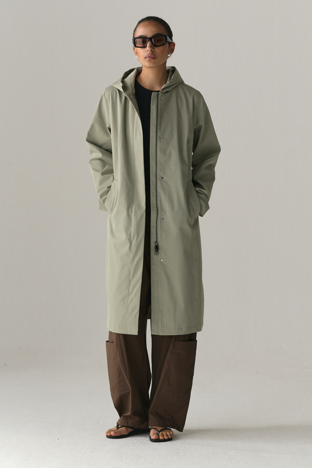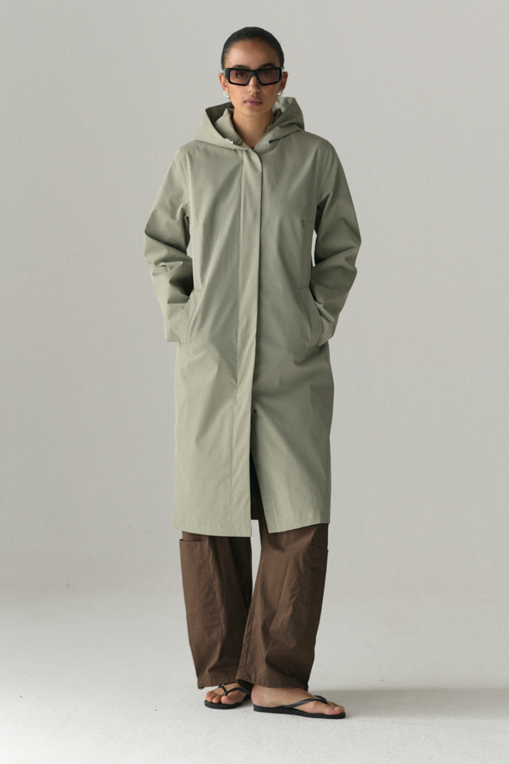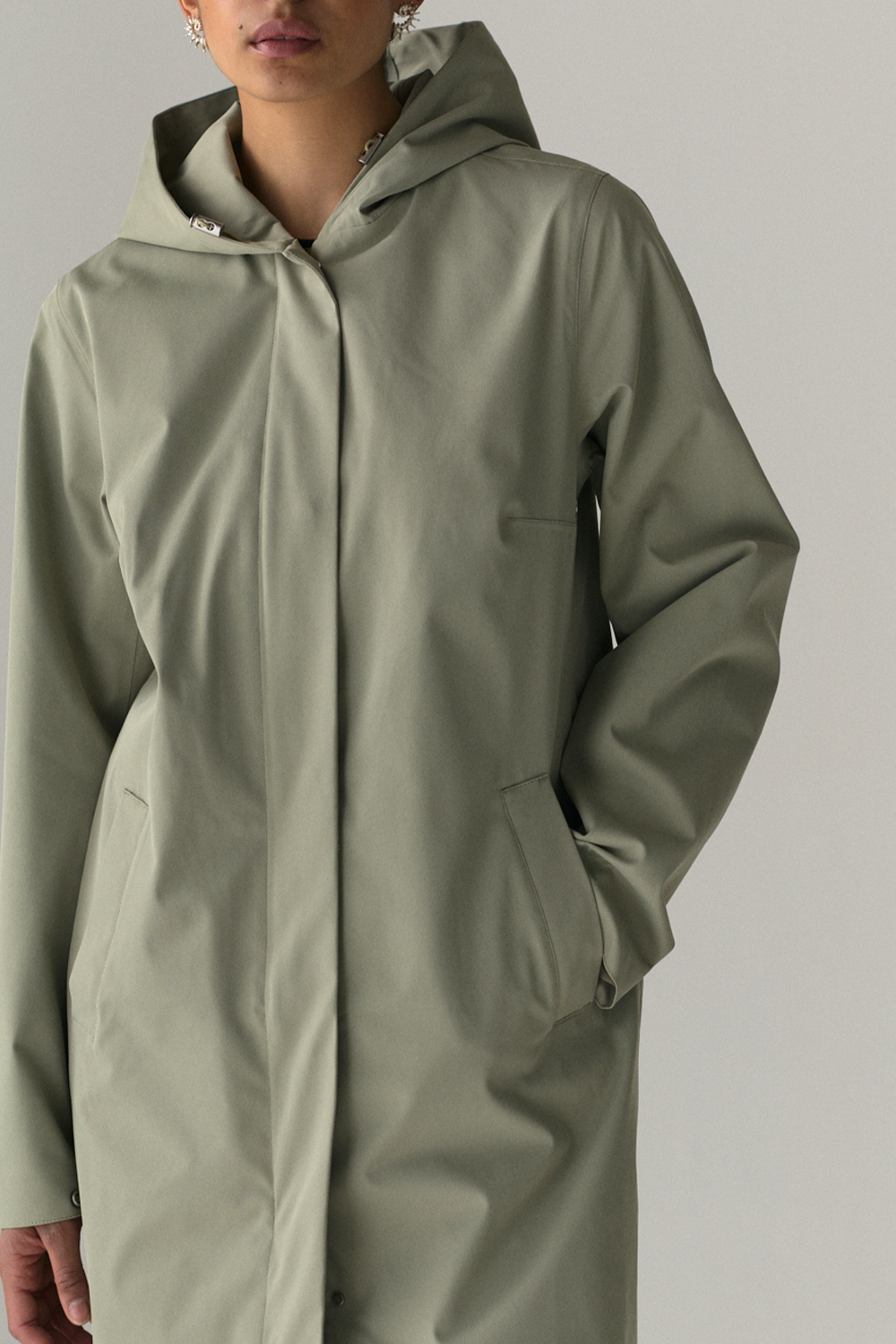 • Long, slim silhouette with hood
