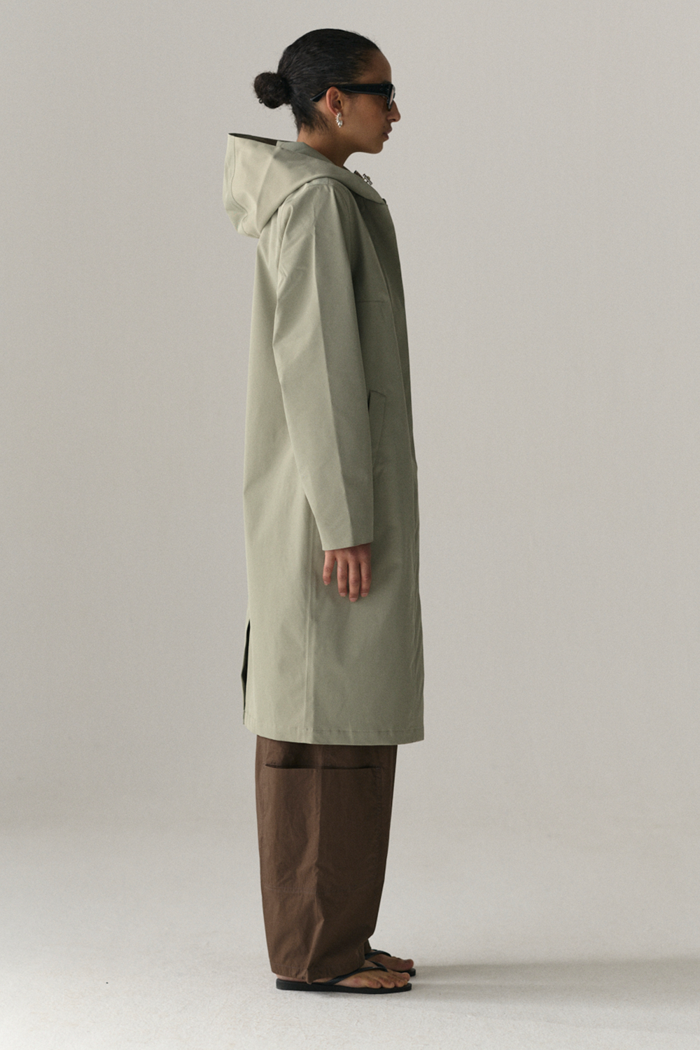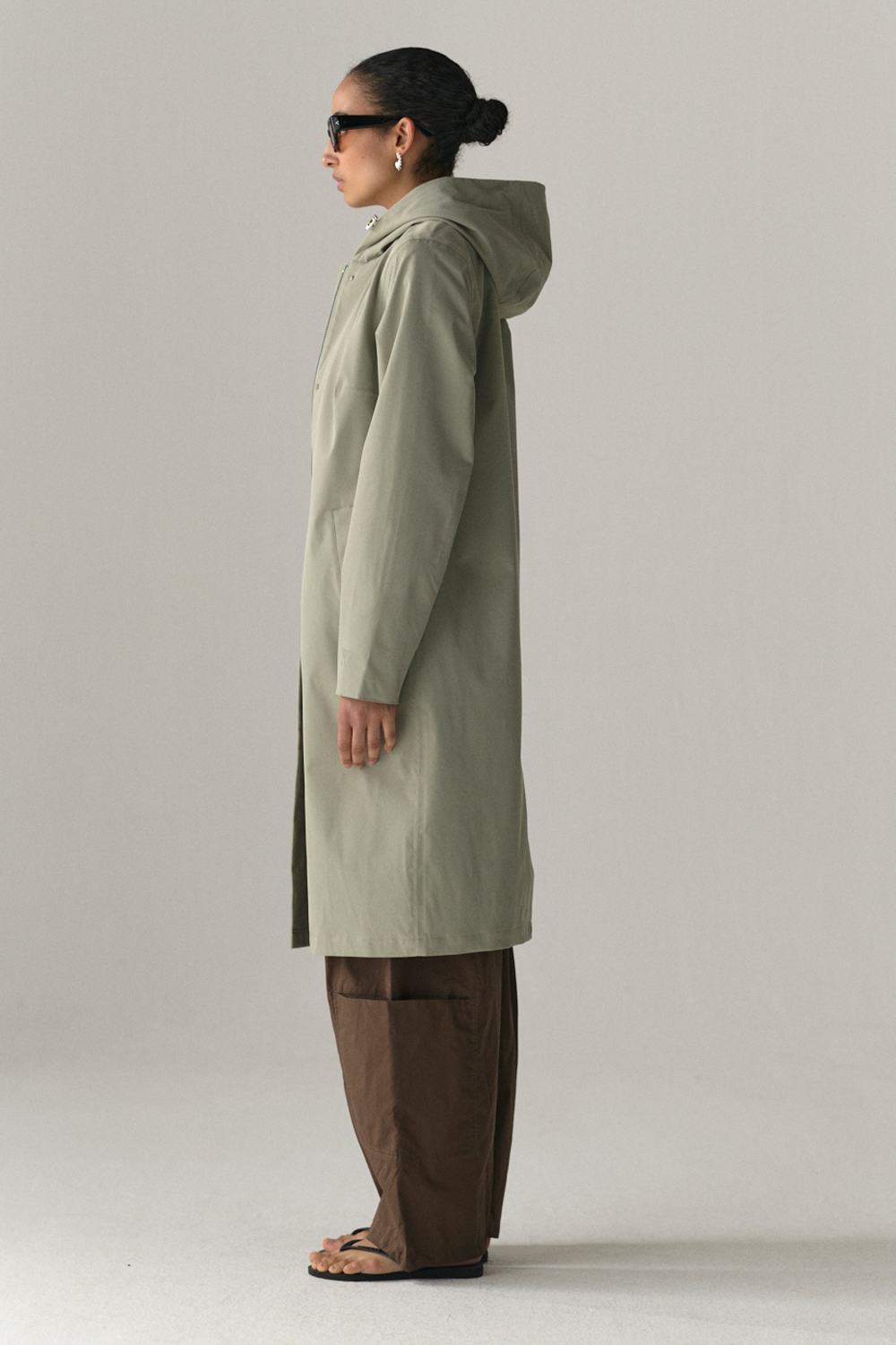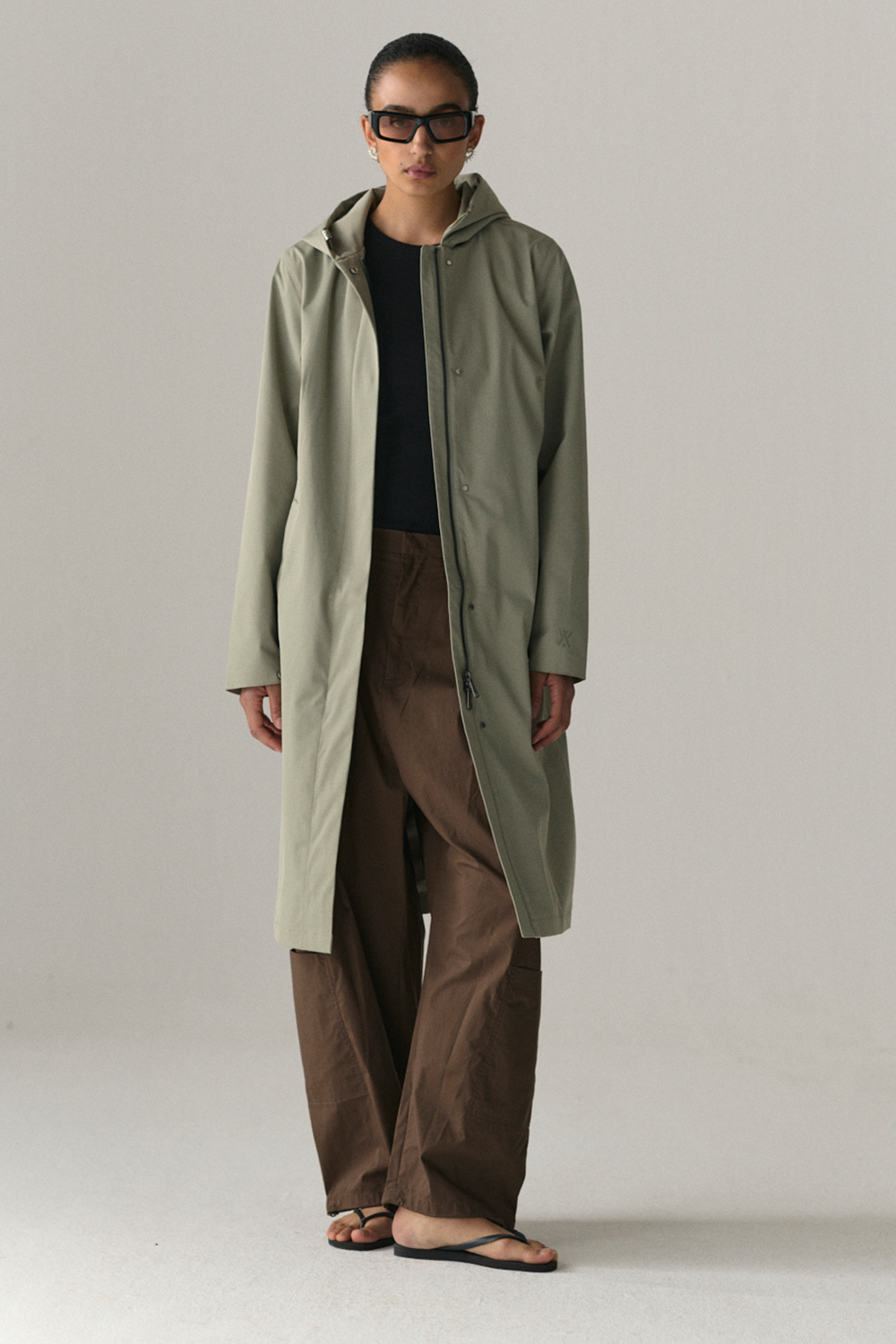 • Long, slim silhouette with hood
