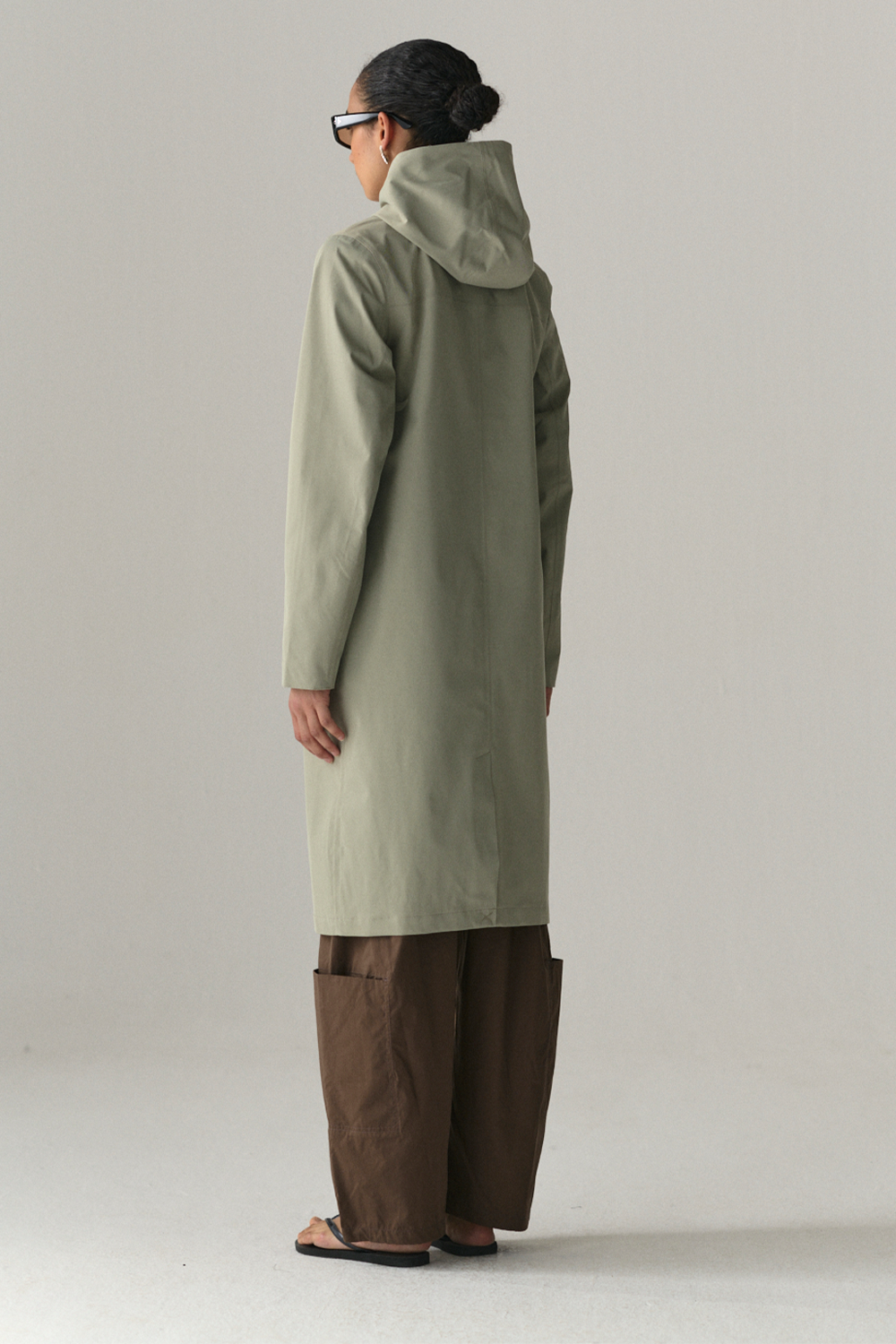 The Not So Long Tube Stretch Twill is a Welter Shelter original—a long and slim coat design with a refined silhouette. What sets it apart is the elegant hood construction, seamlessly integrated without a stand-up collar. This unique approach enhances the garment’s flow and aesthetic sophistication.