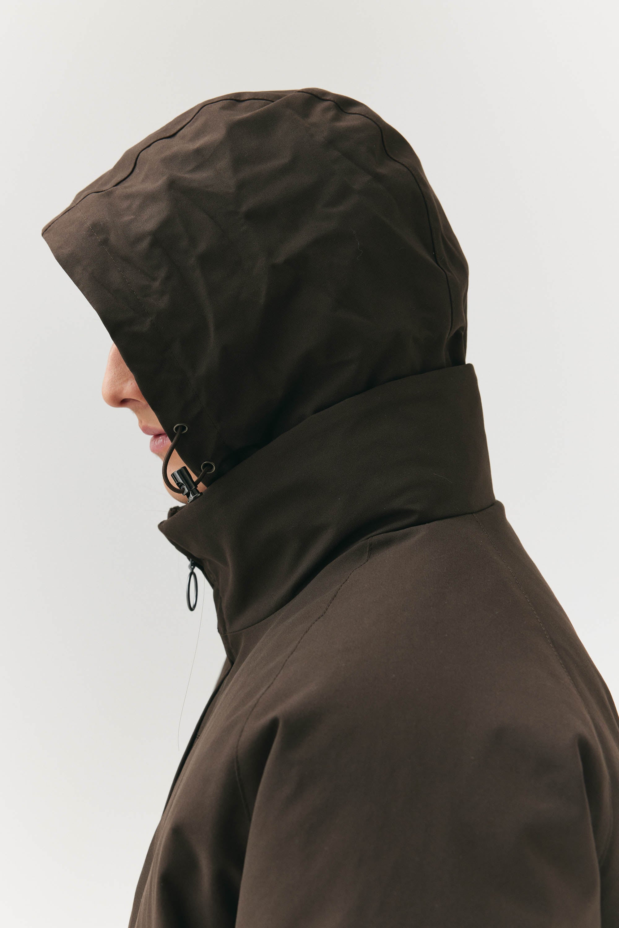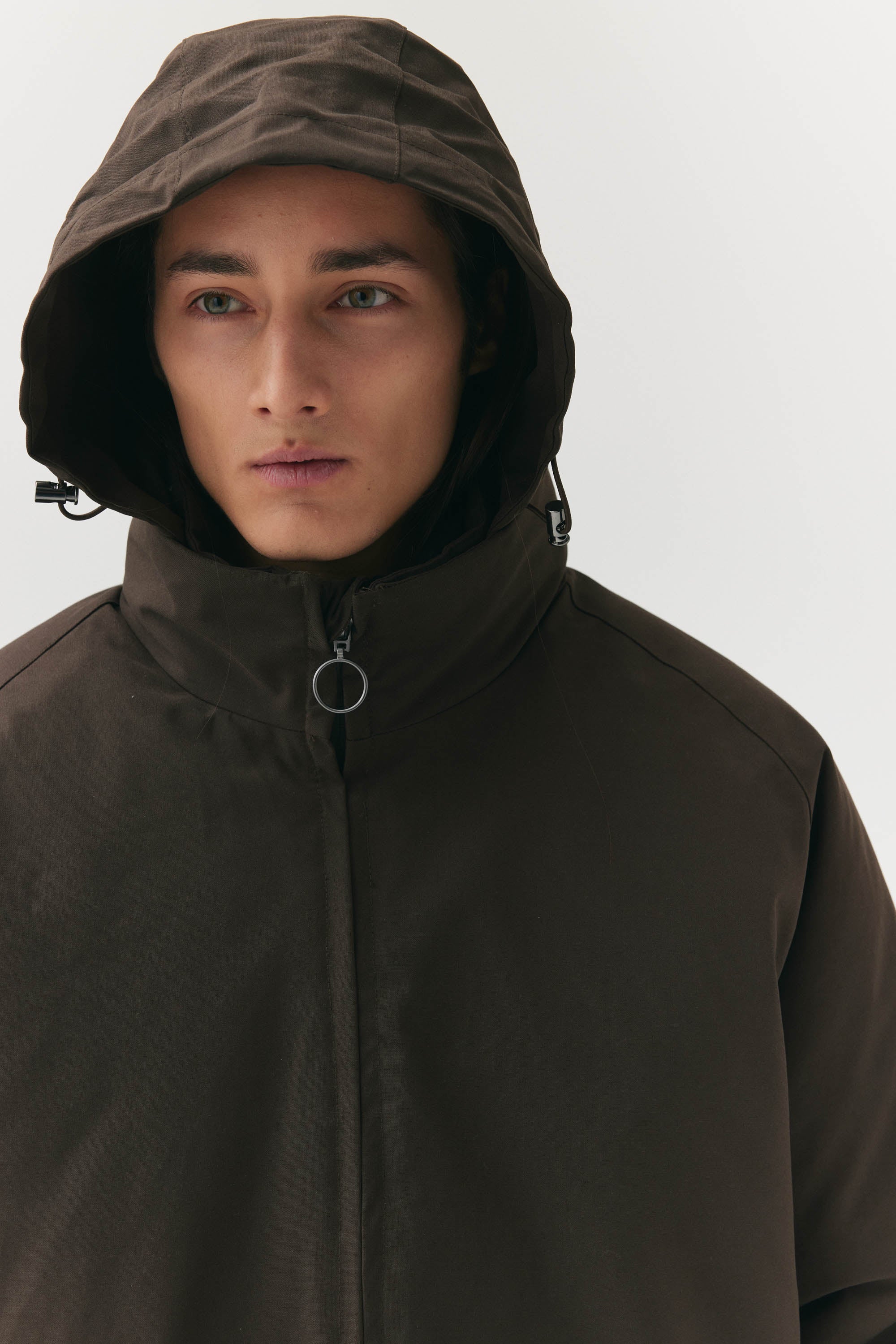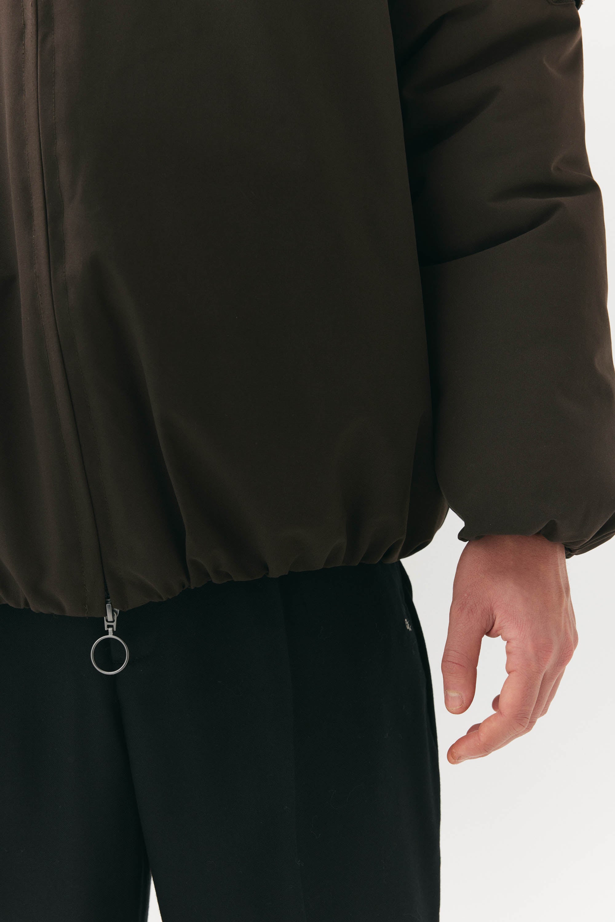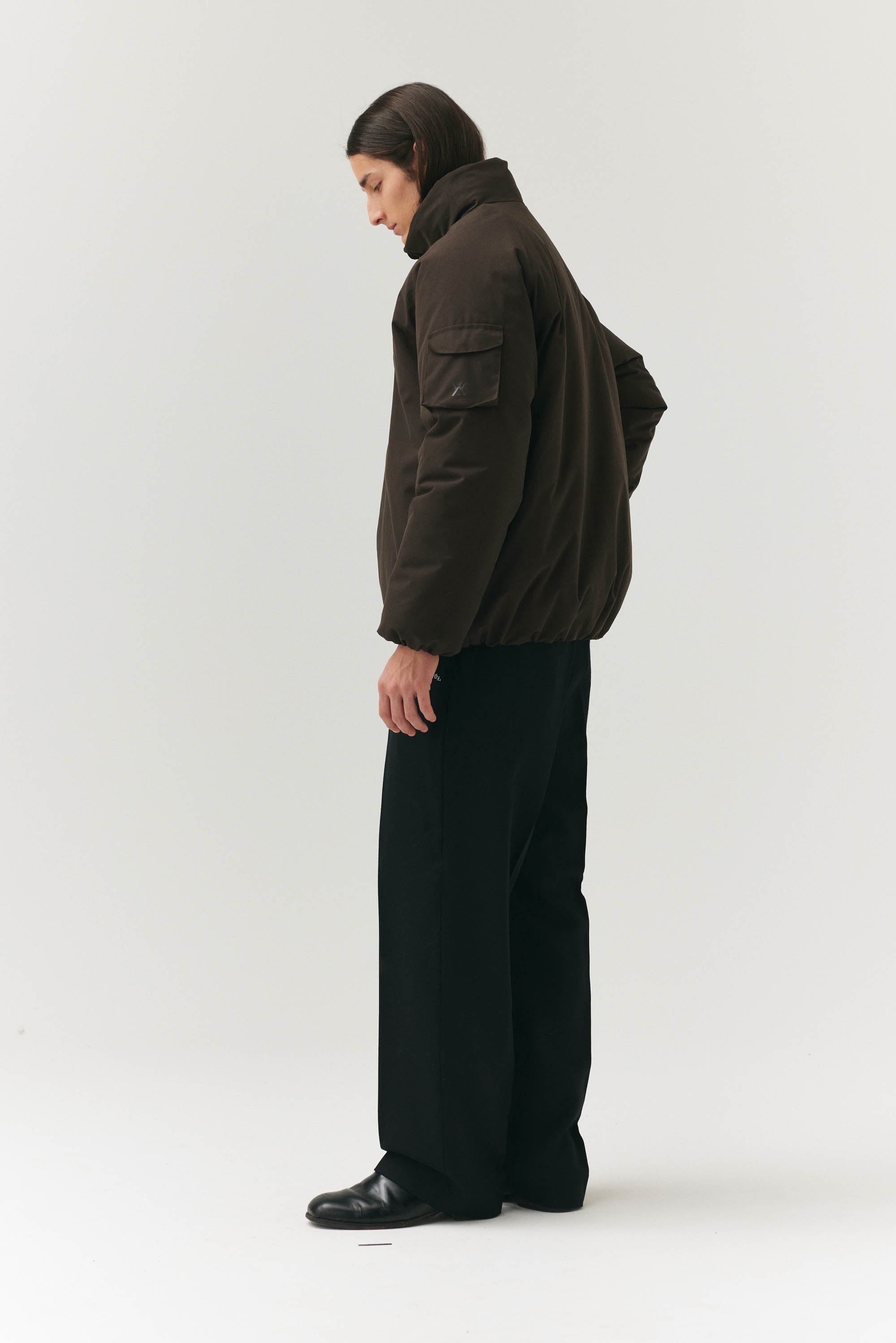 Introducing the latest addition to our AW24 collection: The Short Tracker. A testament to modern design, this puffy jacket presents both style and function. Distinguished by its form, the jacket features a refined stand-up collar, seamlessly concealing a discreet hood within. The insulation of this garment is made from recycled polyester. The integrated regulators along the hem not only offer functional adjustability but also contribute to the creation of an intentionally voluminous and plush aesthetic. Crafted from a sophisticated dry ripstop fabric, further accentuated by the fusion of poly rayon, the Short Tracker embodies a blend of textures and materials. With a formidable water column resistance rating of 15000 mm, this jacket ensures protection against the elements, encapsulating both form and function in a singularly refined ensemble.
